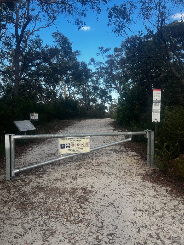 The walk begins right at top of the carpark where you will spot a fire trail with a gate (left).