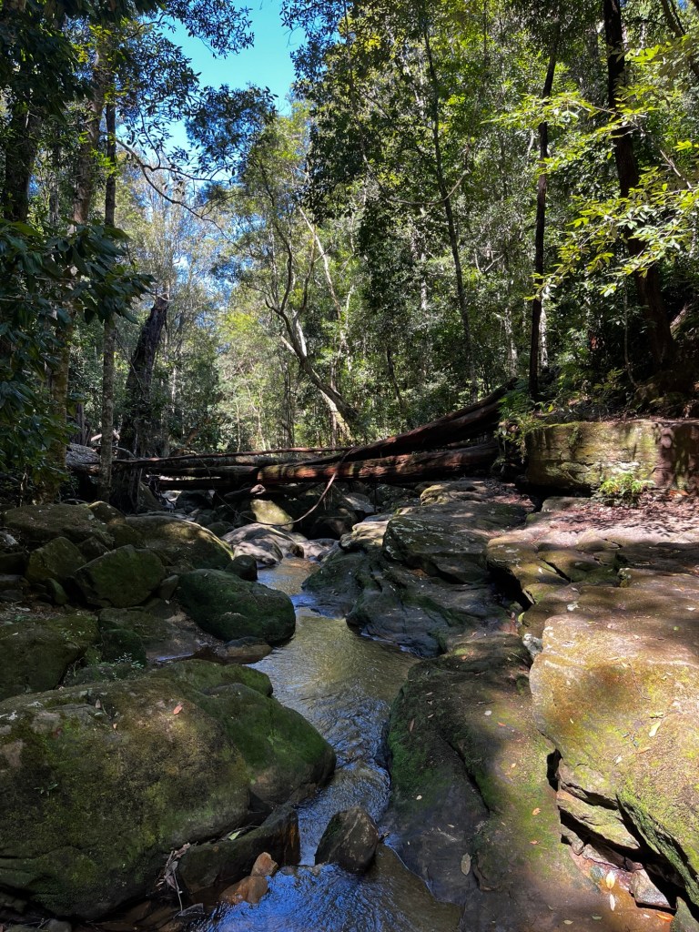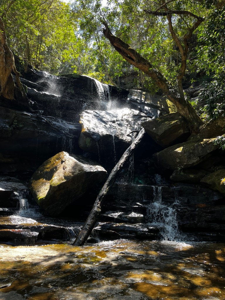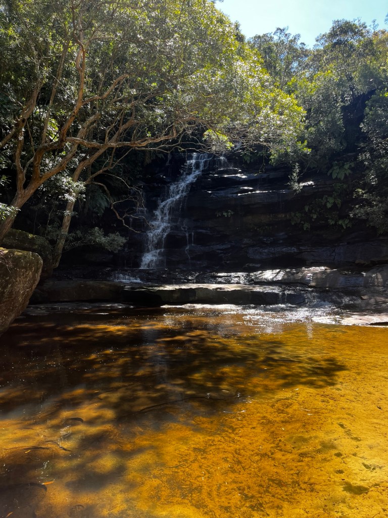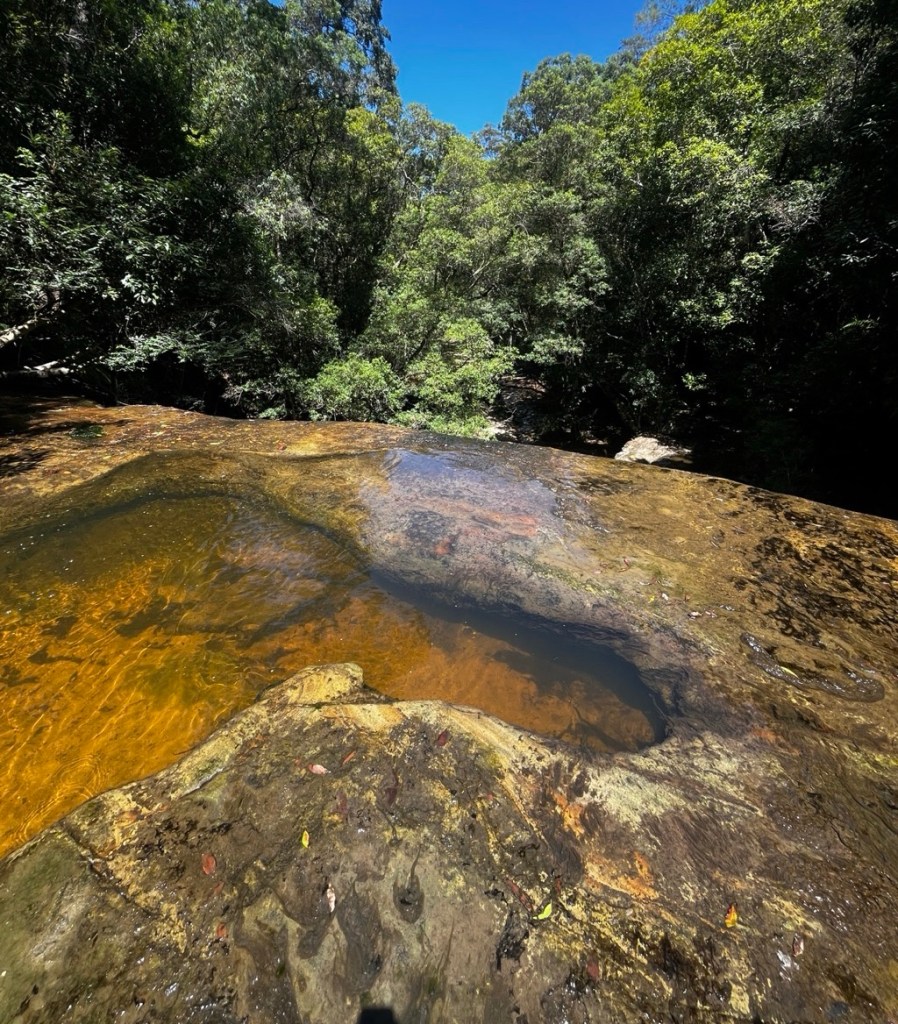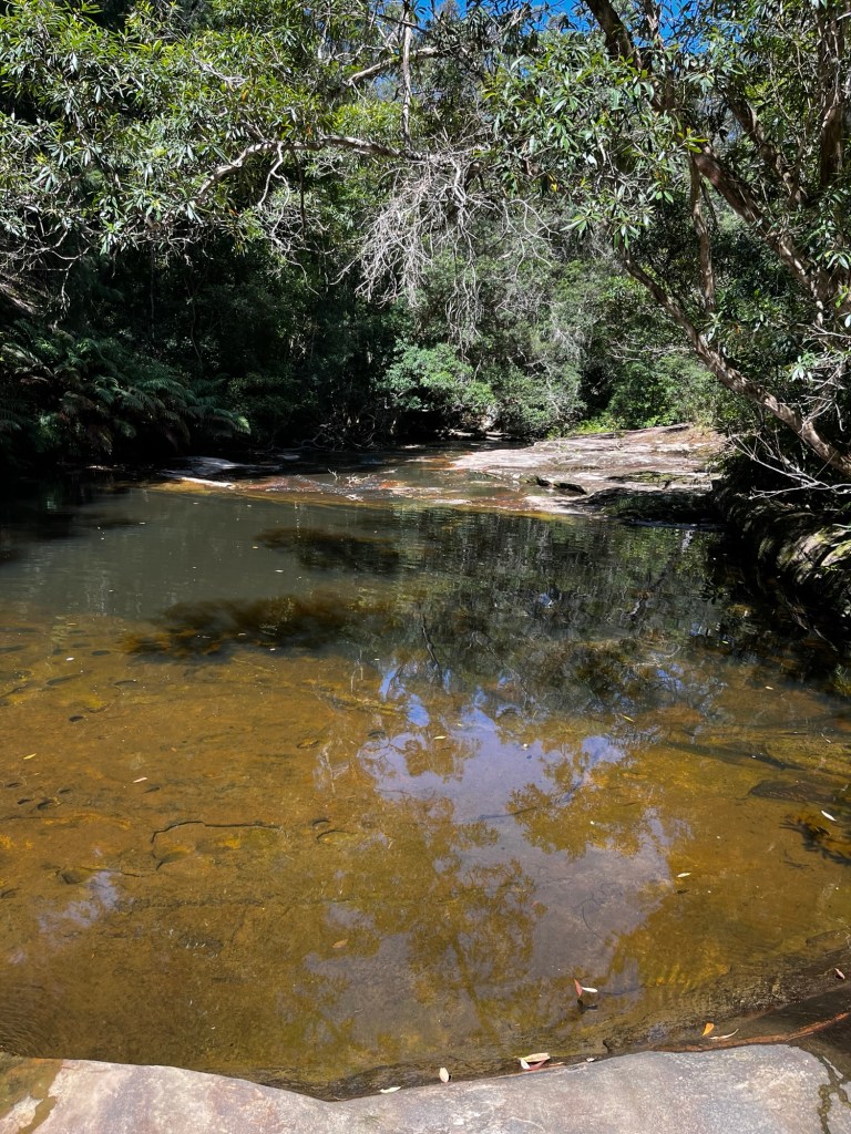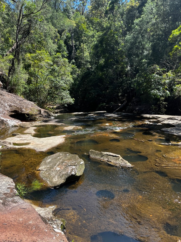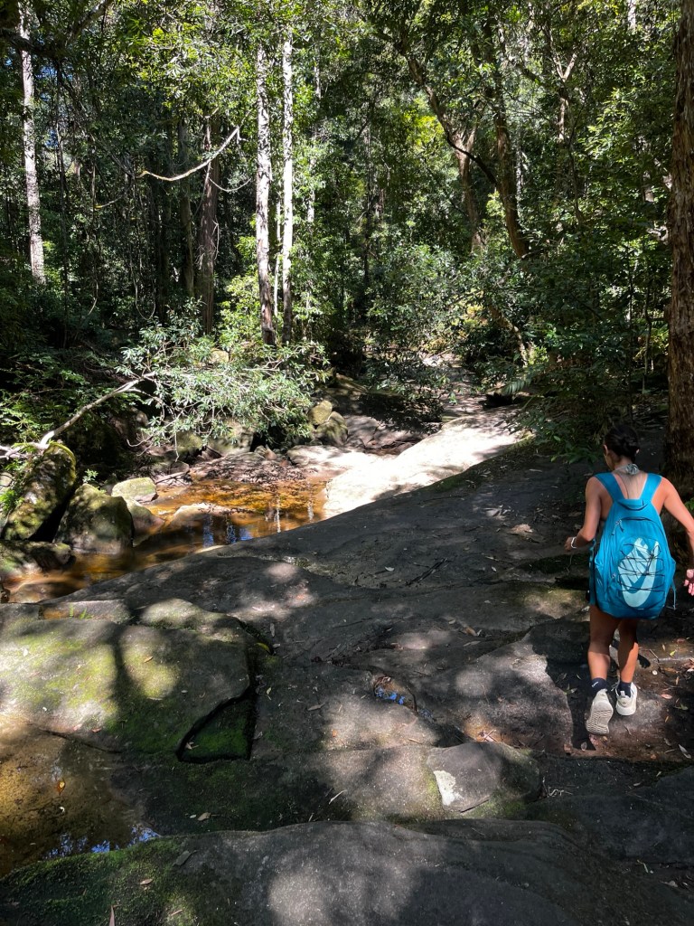 If you choose to walk through the river keep in mind that depending on the weather of the days prior the river might be too full to walk through. In saying that when I walked it had rained a few days before and we were able to walk the river almost the whole way and only taking the old trail for a few metres. I would recommend taking your shoes off and going barefoot if you don’t want your shoes getting wet. The river also opens up into plenty of flat rocky areas. Eventually you will reach the inflow of the waterfall that cascades into the wild swimming hole.