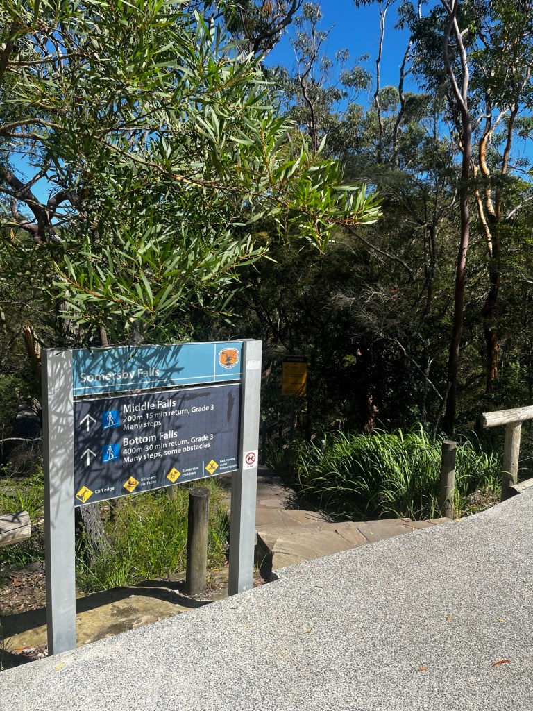 The 5 minute walk to the middle falls is predominately steps downhill but also include a seperate cascade and a small lookout point 1 set of stairs from the middle falls. The middle falls empties out into a flat rocky area which is great for a picnic or even a dip.