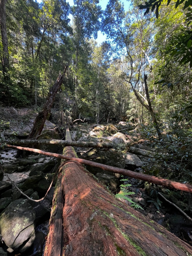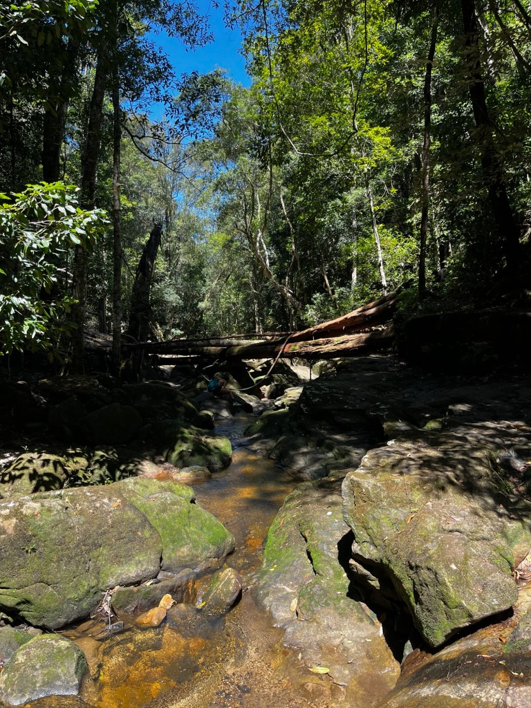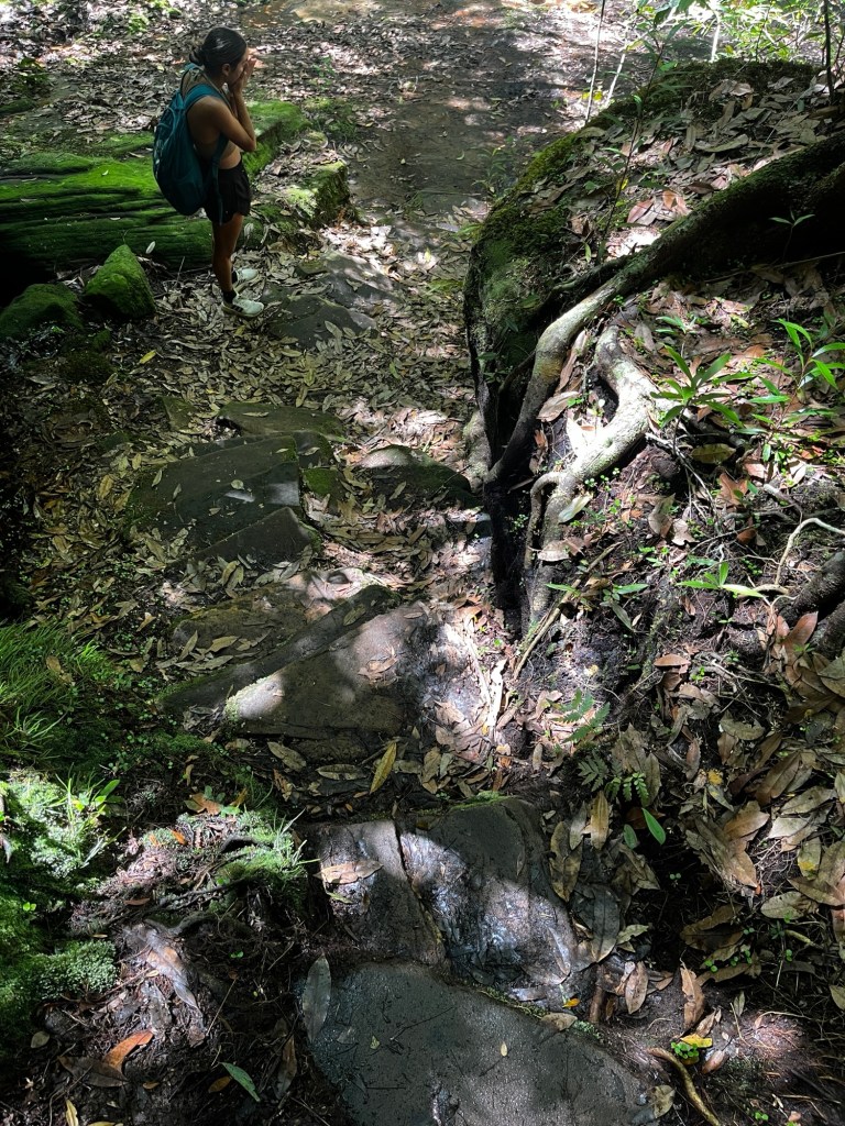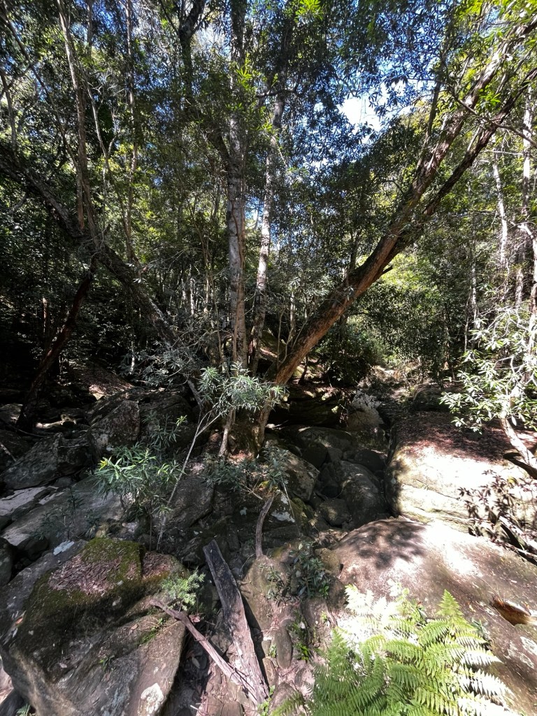 If you choose to walk the old trail for almost the entire walk you should stick to the right side. Although there is a trail on the left side it is much less walked and therefore less maintained. The trail has lots of stone staircase that are hard to miss that take you up and over. As it is no longer an offical trail there are plenty of big fallen boulders and trees that sometimes get in the way but aren’t hard at all to clamber over. After about 15 – 20 minutes you will spot the inflow to the waterfall that cascades into the wild swimming hole.