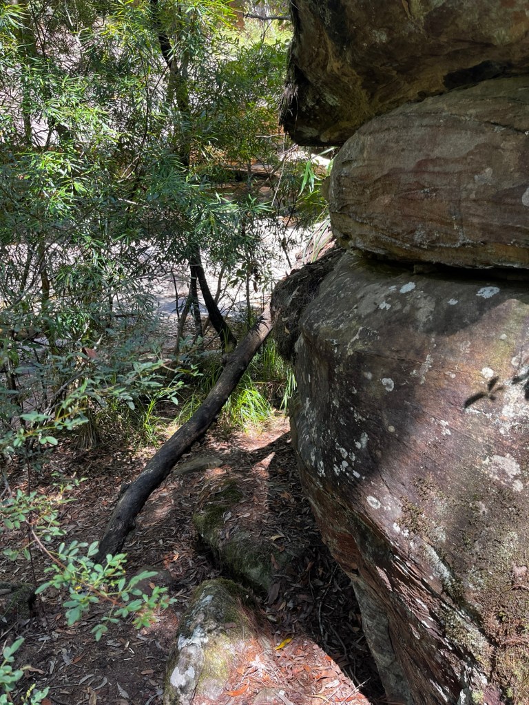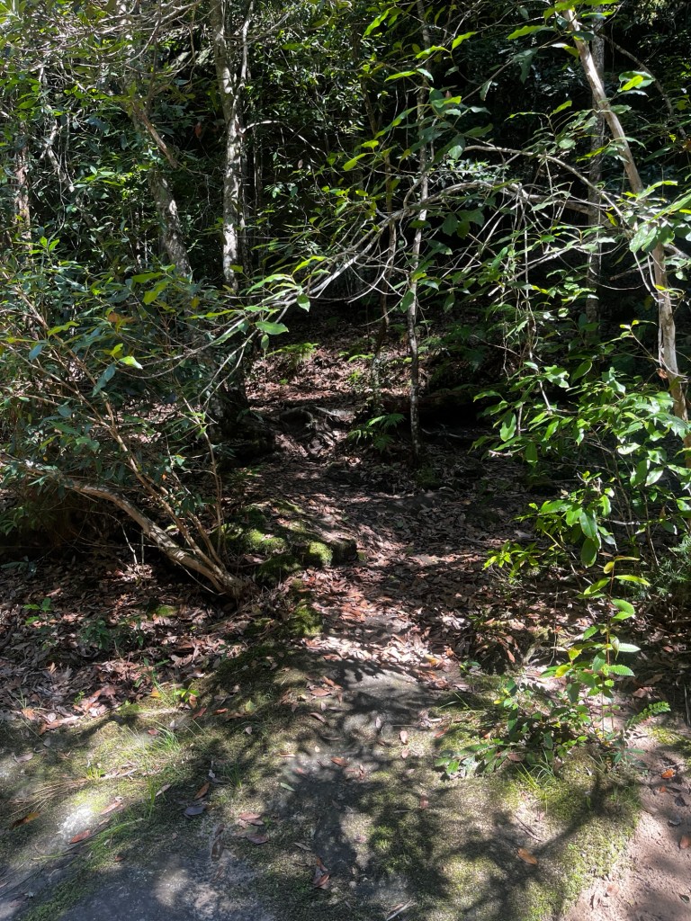 From here whether you used the old trail or walked through the river cross over to the left side where you will see a narrow muddy overgrown old trail that weaves around and takes you to the side of the swimming hole. From here to reach the bank of the swimming hole clamber down the steep trail that will take you to the bottom.